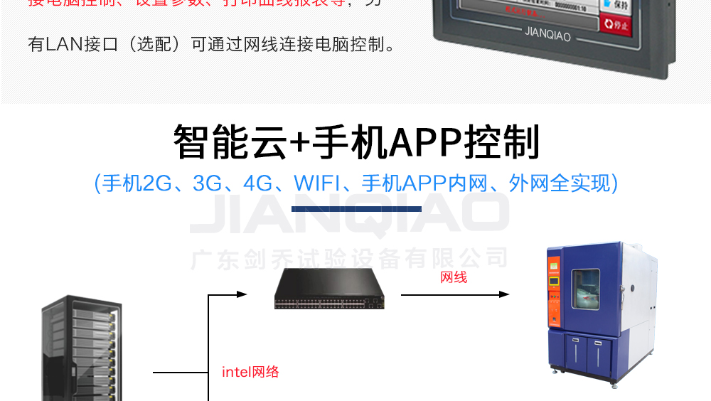 產品型號:JQTH-1400L(非標定制款) 品牌:劍 喬 用途:廣東劍喬新款-可程式恒溫恒濕試驗箱1400L(屬于:非標定制款)主要用來測試各種材料耐熱、耐寒、耐干、耐濕的性能。本機采用智能中英俄文顯示7寸彩色觸控式屏幕畫面,操作簡單,程序編咨詢熱線:13829135130
